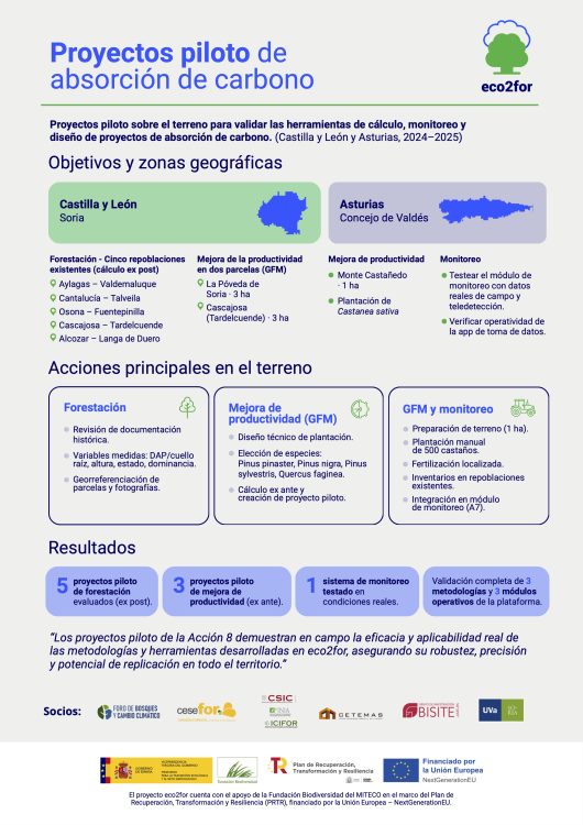 Detallamos todo el trabajo de los proyectos piloto ejecutados en Castilla y León y Asturias en el marco del proyecto eco2for: objetivos, áreas geográficas, acciones principales y resultados obtenidos.